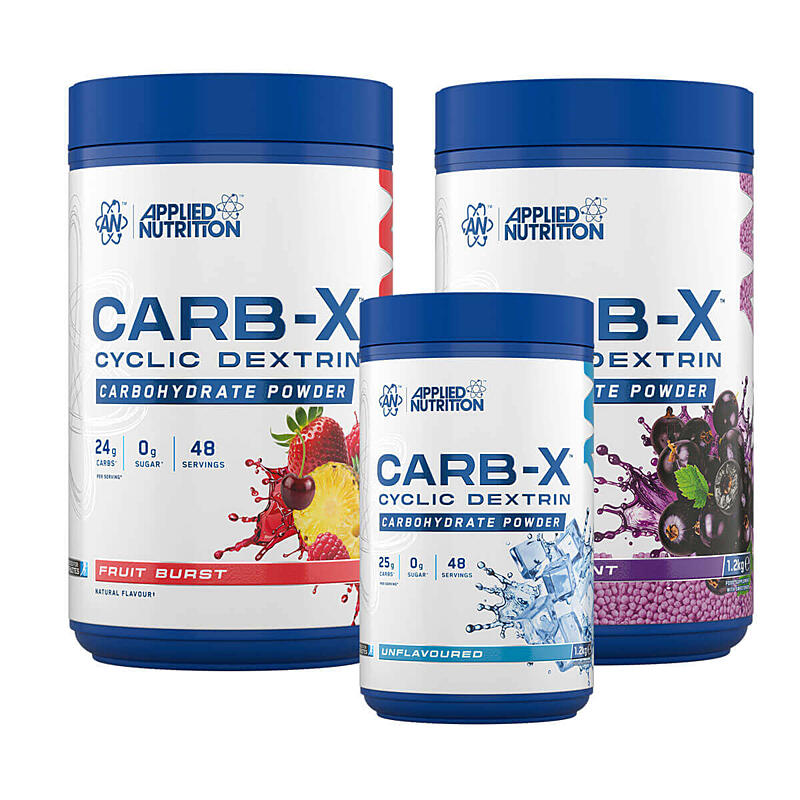 Vysoce rozvětvené cyklické dextrinové sacharidy Carb-X ™ (Cluster Dextrin®) jsou dobře rozpustné a poskytují rychlý zdroj energie. Přípravek Carb-X lze použít společně s BCAA a EAA společnosti Applied Nutrition. Dalším výborným produktem v kombinaci s Carb-X je i-Drive ™ společnosti Applied Nutrition.