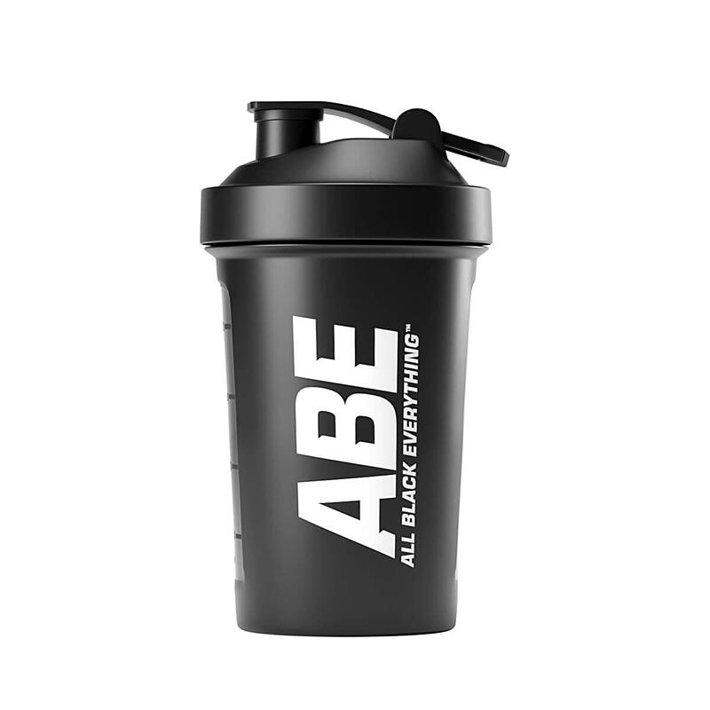 Tento šejkr má objem 400 ml a má bílé logo ABE All Black Everything. Šejkr je vybaven síťovanou mřížkou, šroubovacím víčkem, klipsnou a nepropustným designem. Design šejkru je jednoduchý a ergonomický a díky nízké hmotnosti se perfektně vejde do tašky do posilovny. Víko má velký výlevku, která umožňuje snadnou a rychlou konzumaci namíchaného produktu.