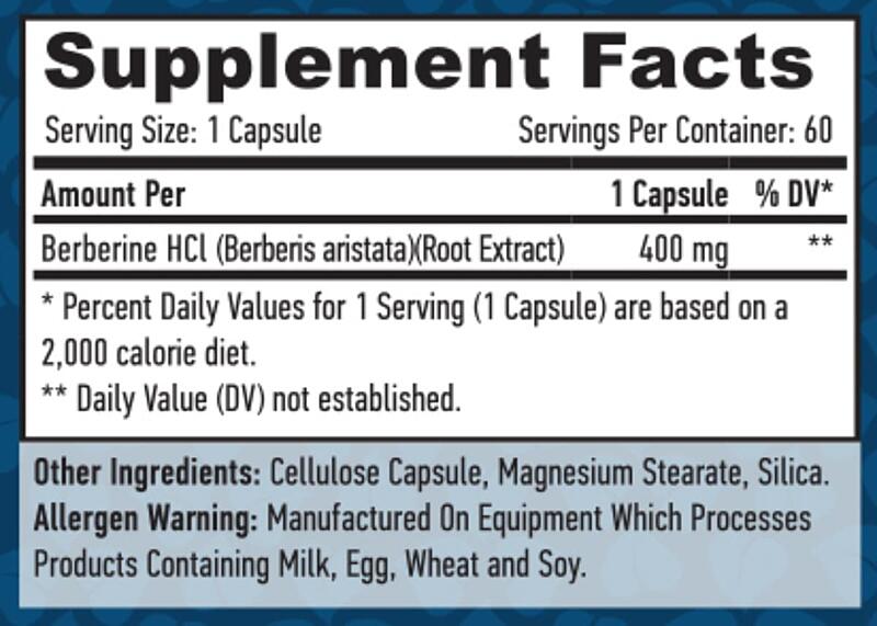 Složení: Berberin HCL, celulózová kapsle, stearát hořečnatý, oxid křemičitý.
