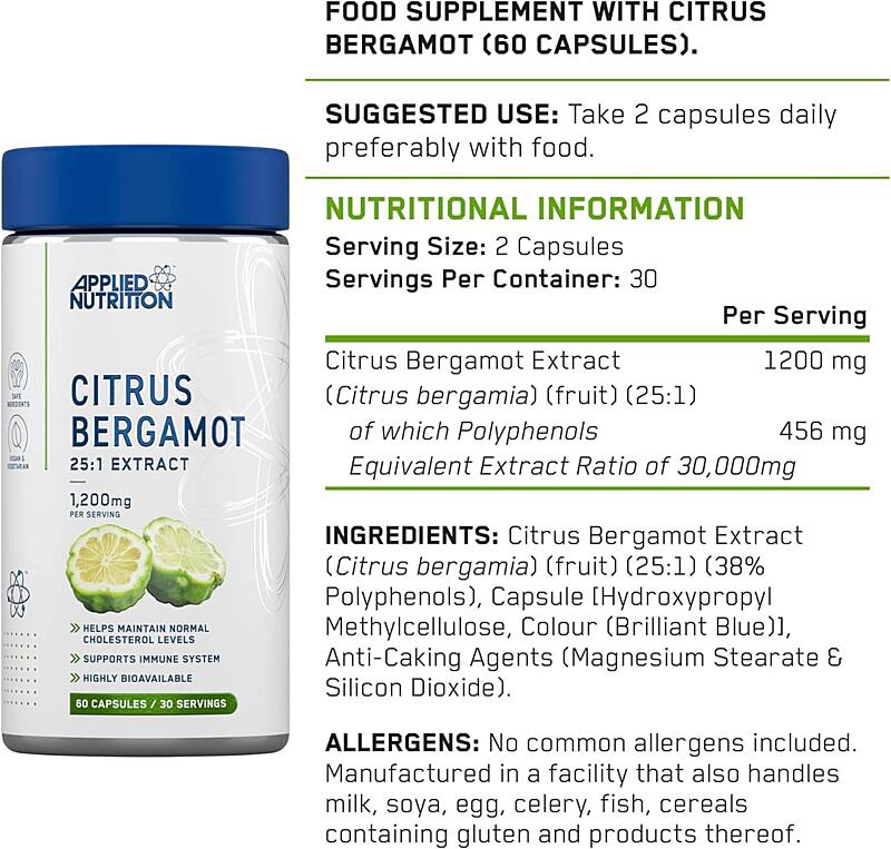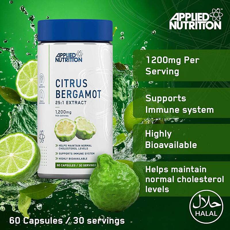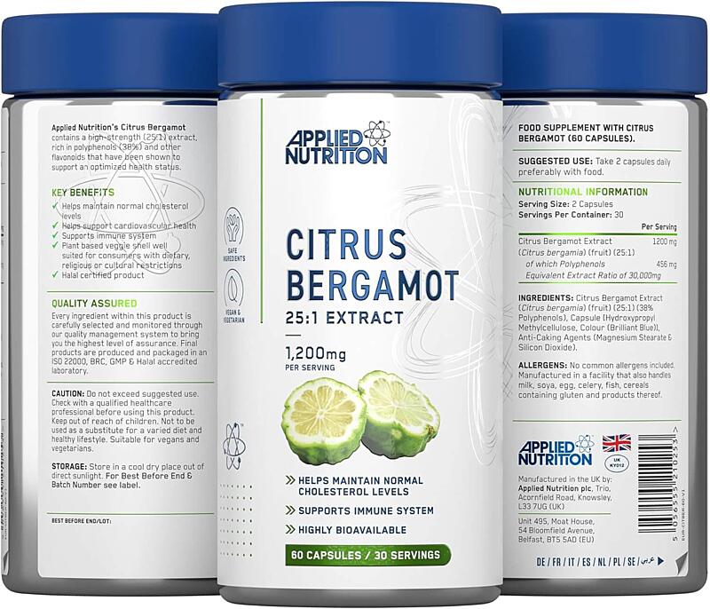 Applied Nutrition Citrus BergamotCitrus Bergamot from Applied Nutrition is a high-quality extract from Citrus bergamia fruit, with a concentration of 38% polyphenols, including powerful natural compounds such as naringin and neohesperidin. This extract is designed to support heart health – it helps reduce total and LDL (bad) cholesterol, triglycerides, and promotes healthy HDL (good) cholesterol levels.