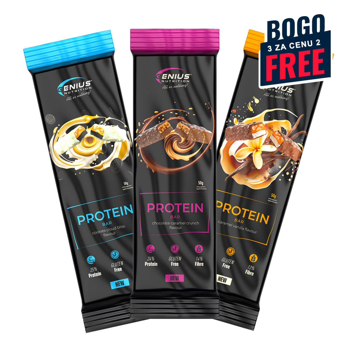 Whether you need energy before a workout, recovery after effort, or simply a tasty snack between meals, GENIUS NUTRITION® MULTILAYER PROTEIN BAR is the ideal solution. With a carefully crafted composition and unparalleled taste, this bar satisfies your sweet tooth without compromising your nutritional goals. Each box contains 24 bars, perfect for enjoying a delicious and nutritious snack anytime you need it!